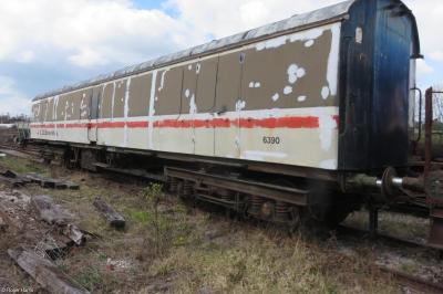 Went into the carriage shed at butterley in late February 2006, for contract repairs, generally a messed about coach only one gangway fitted, 3 OLEO buffers and one original Mk1 buffer. Ultimately destined to be a storage coach at another railway, present livery expected to be retained